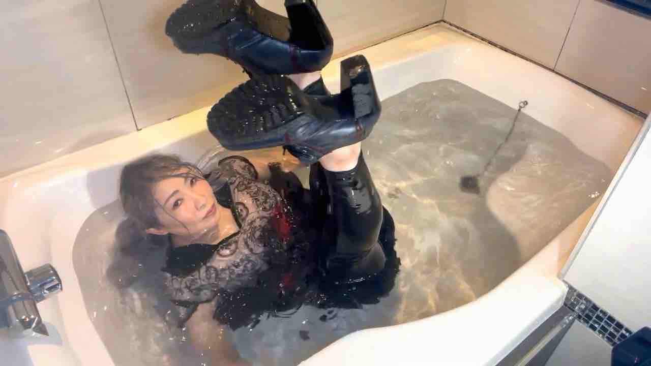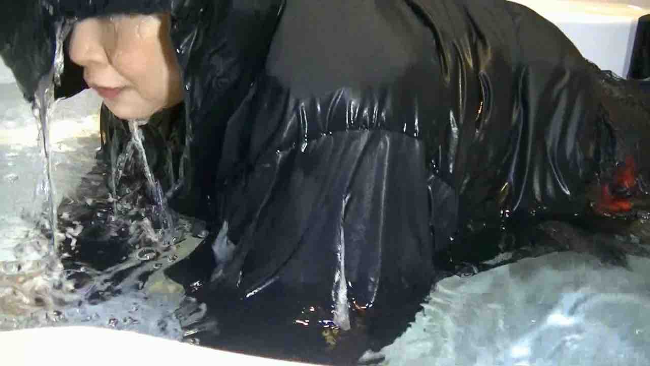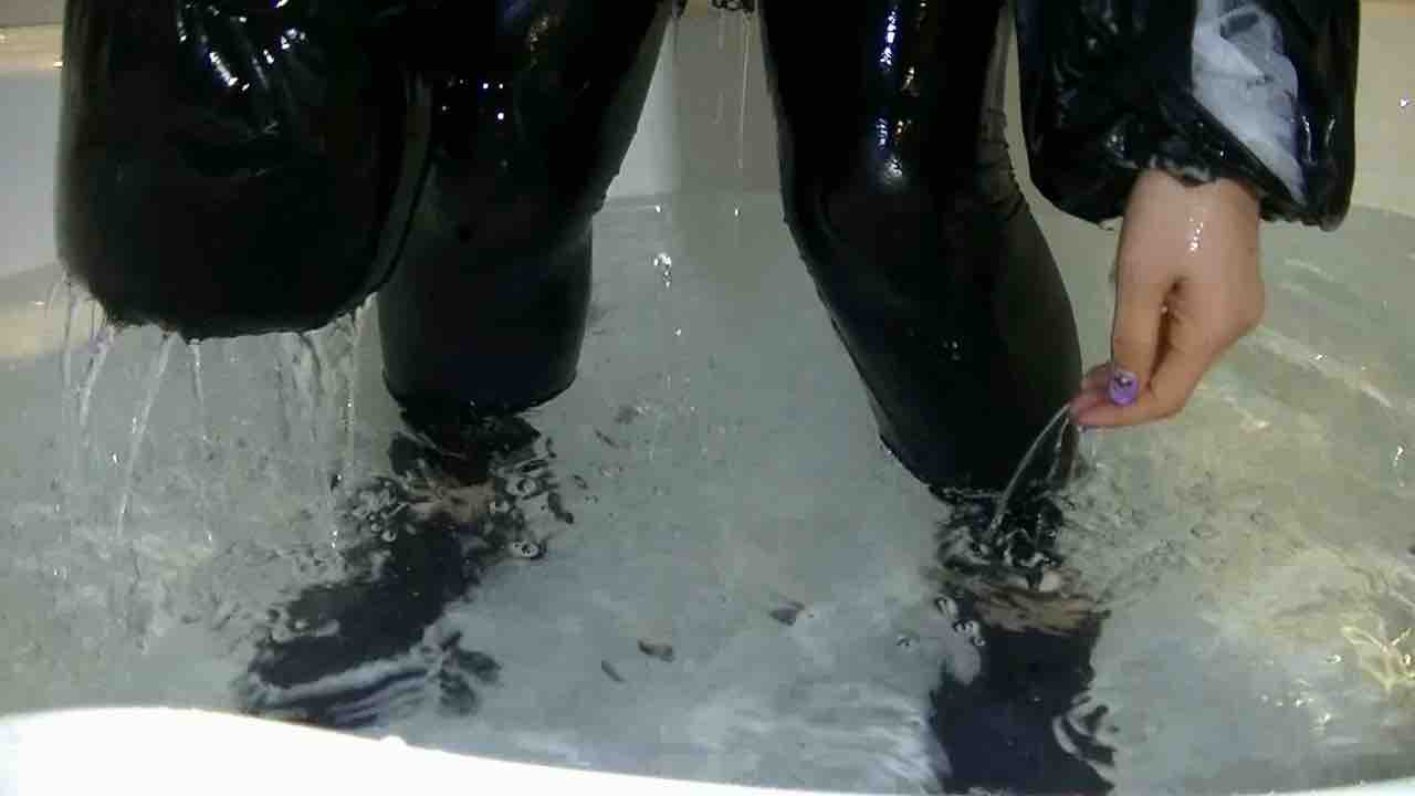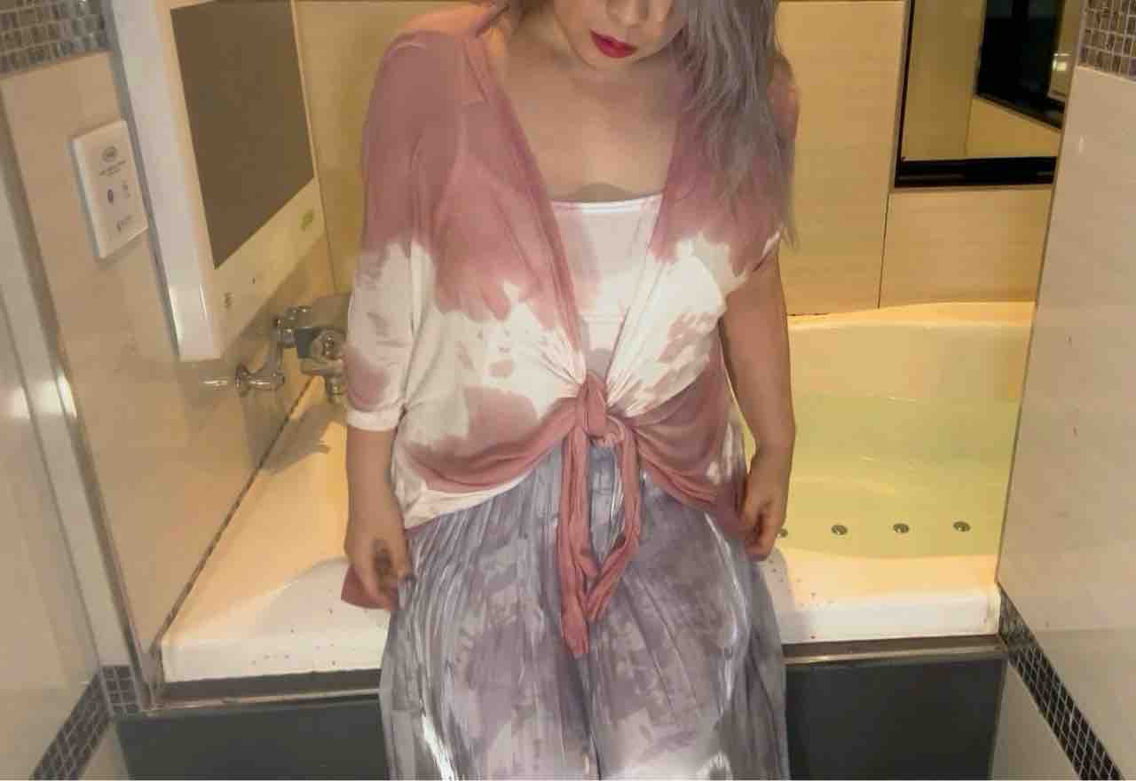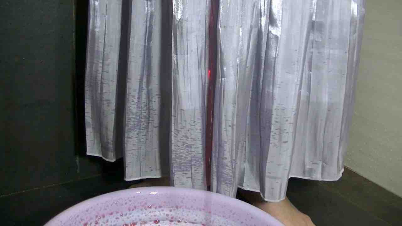 まずは洗面器にワインを流し込みながらスカートに跳ね上がるのを楽しんで、