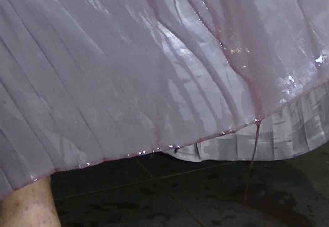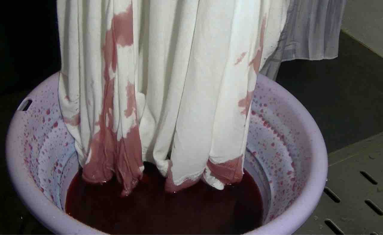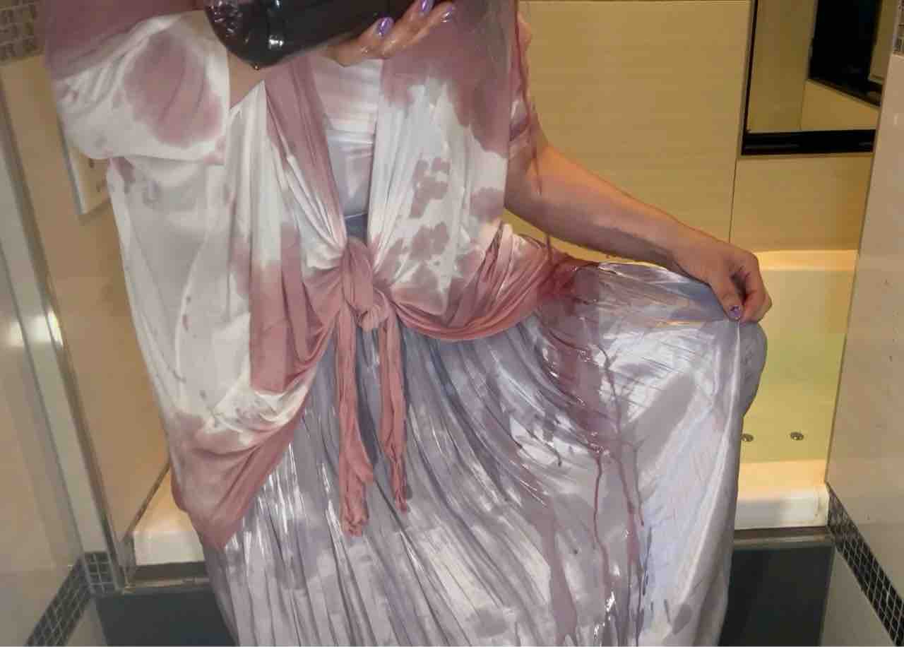 ワインは液体なのですぐに流れ落ちてしまうんですが、スカートの裾の縫い目のところに色味が溜まるのが良かったです。