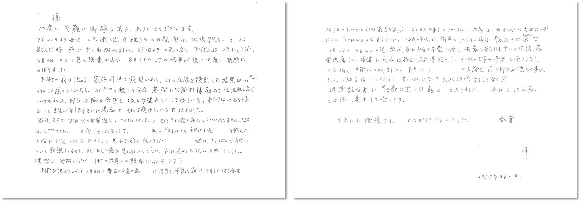 それから、この方は手術でできるだけ小さく癌を取るようにお医者様にお願いされています。個人的にはこれは非常によかったことだと思います。