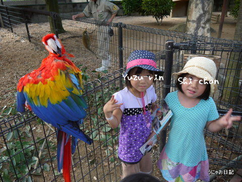 悠々と毛づくろい(羽根つくろい?)する鳥と、近すぎて緊張してるちびっこ達(笑)