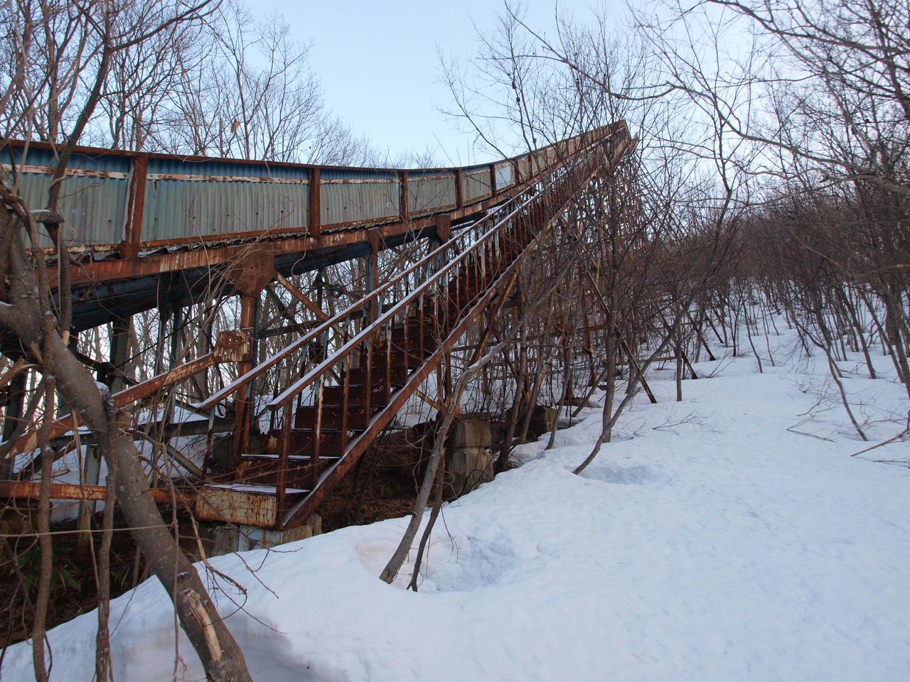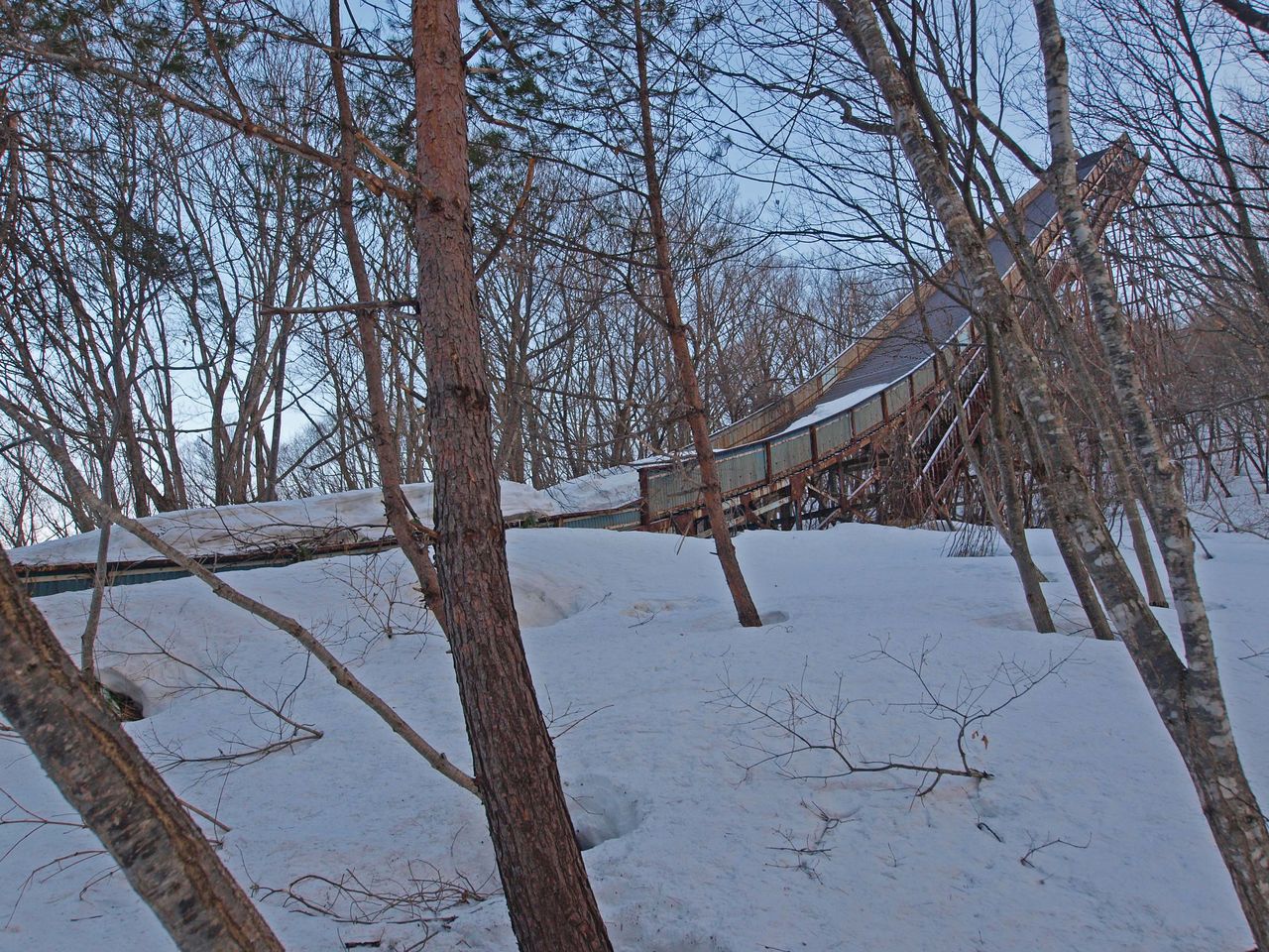 森の中に打ち捨てられたジャンプ台は死せる恐竜のように印象的ですが、徐々に朽ち果てていくことでしょう・・・。