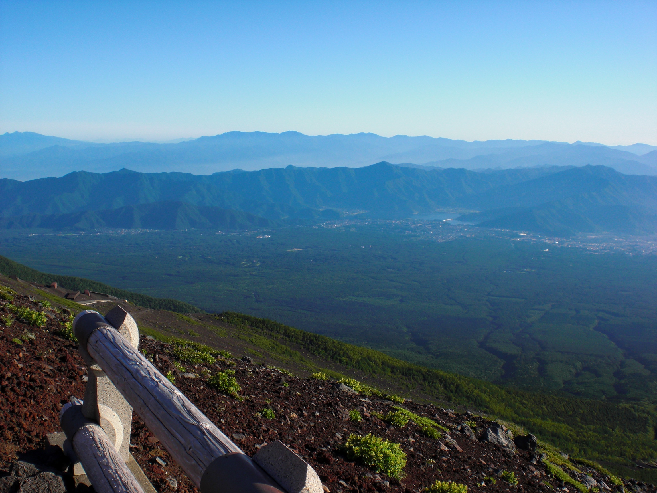 今回一緒に行った女性ふたりもも、過去に山頂まで行ったことがあるので、ご来光を楽しんだあとはすぐに下山道を通って下山。下山途中、7合目の手前辺りの風景はこんな感じです。