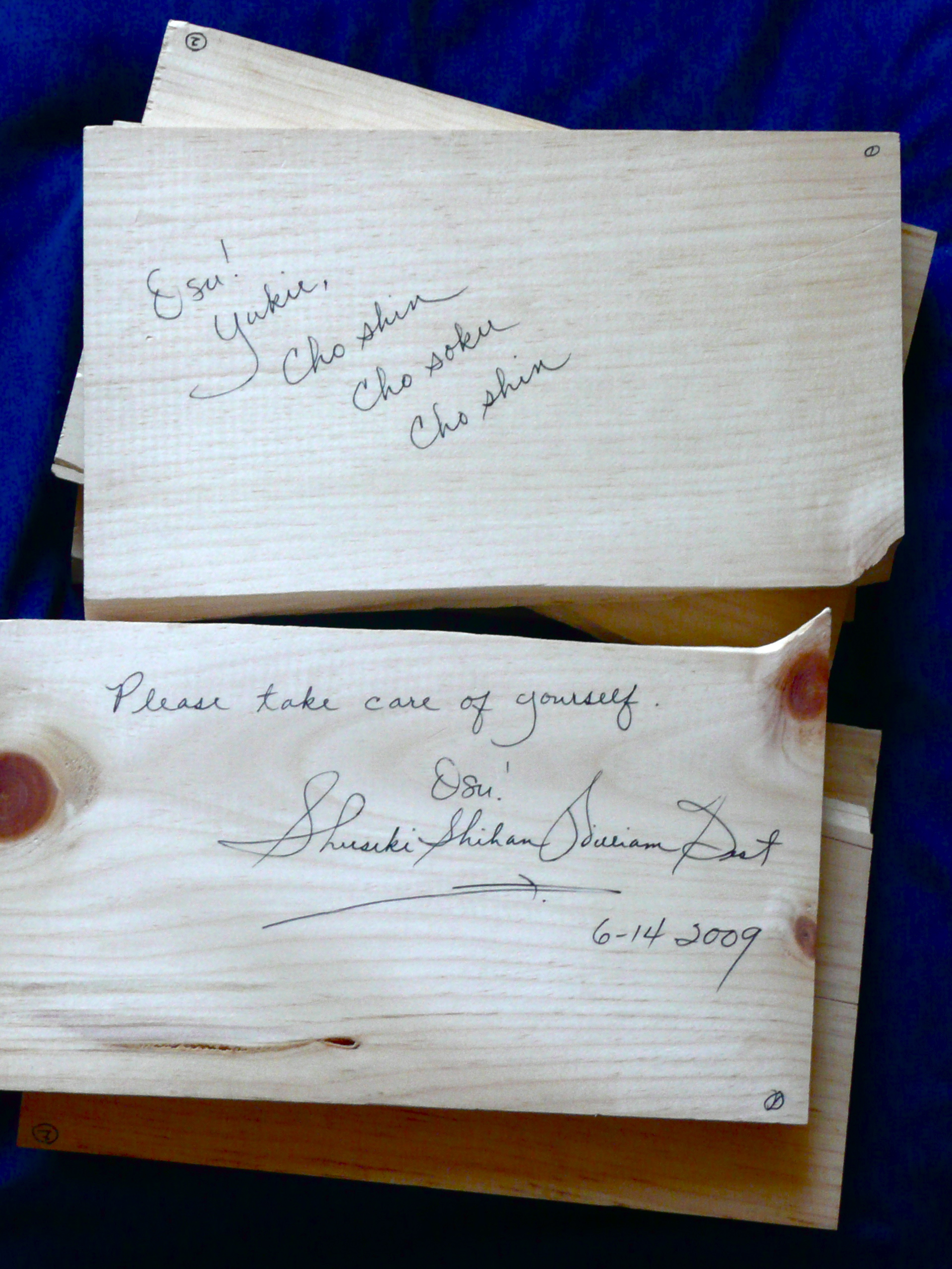 記念に、指導してくださった主席師範にサインしていただきました。