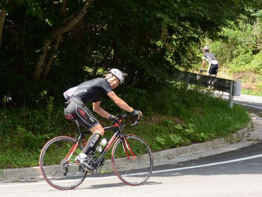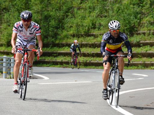 久万高原に450名のクライマーが集結して今日絶好の天気の中決行されましたヨッチャン注目のこの2人も予想以上に頑張りました、中でもサヤサヤ士は先日試走に来てご覧のようになっていましたがその成果は如実に現れ短いキャリヤながら、ワース氏に肉薄して良いレースを演じてくれましたお見事なレースに感動でした他の男レーサー達はもう凄すぎてあまり感動はありません(笑)写真は後日公開予定です ヨッチャンも3輪車に挑戦したのですがキャッjrに程遠いタイムで完敗、(涙:::)楽しい1日でした今日の一言「競争心こそ成長の糧」