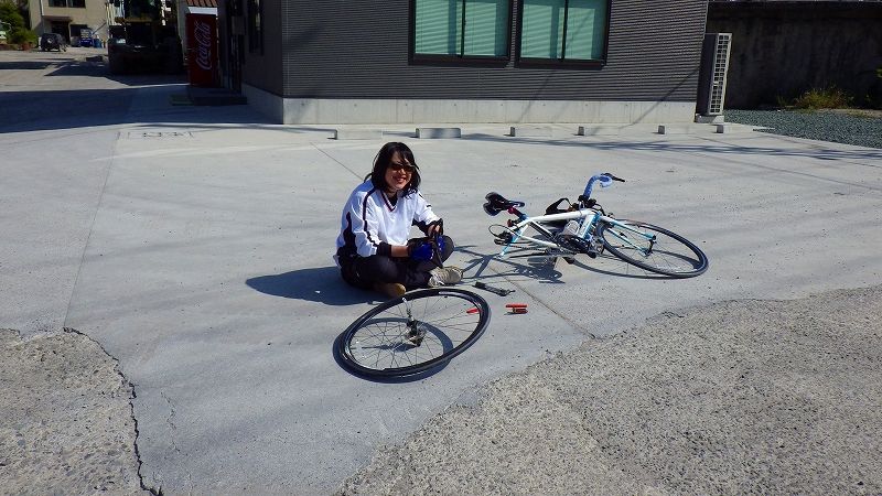 猛スピードで帰ってきたのでチューブを借りて修理をして