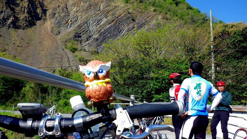 採石場で飛び出したチコ妃がパンクして止まっています