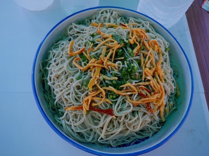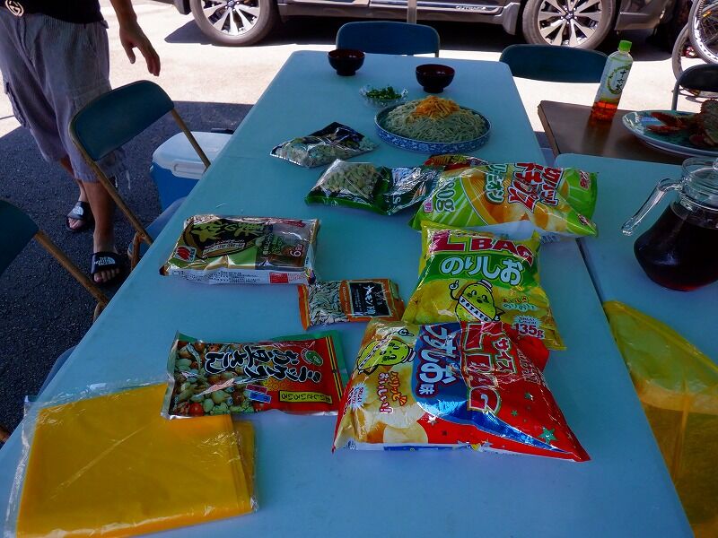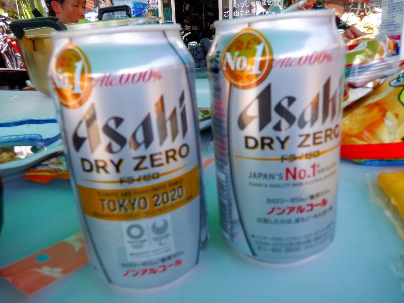 ヒオウギ貝や冷やしそば、ノンアルをテントの下で