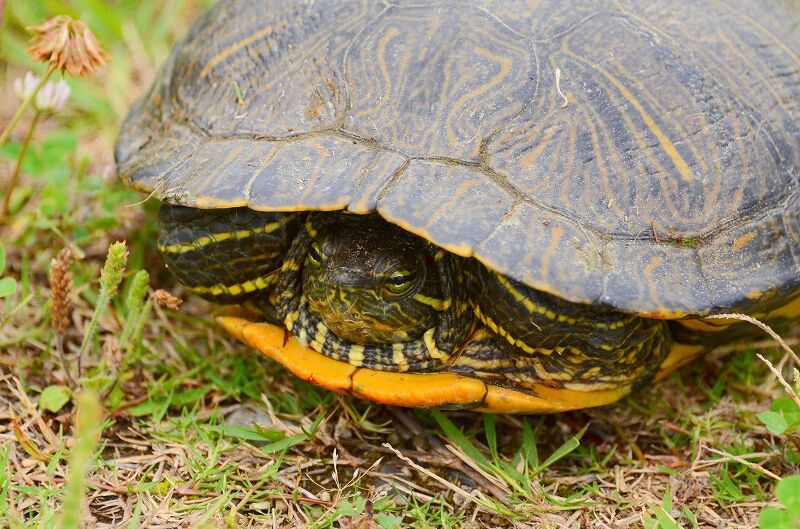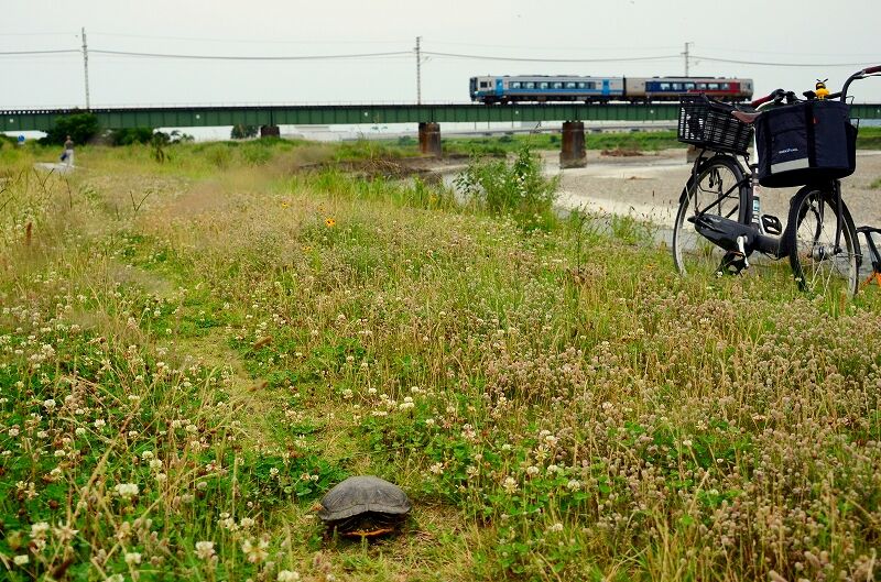 横にカメちゃんが散歩中でした