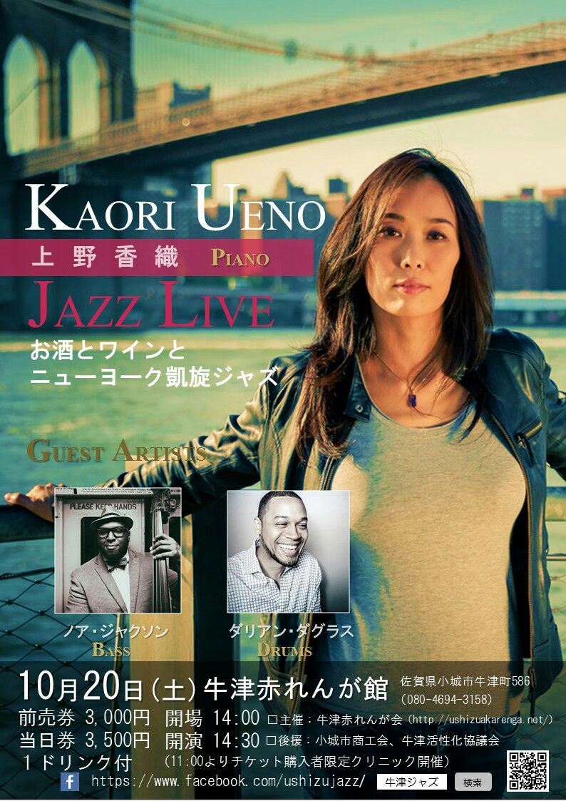 10月20日(土)上野香織ニューヨーク凱旋ジャズライブのチケットの前売り券の売れ行きも絶好調です。前売り券は残り数枚となりました。ご予約はお早めにどうぞ🙏