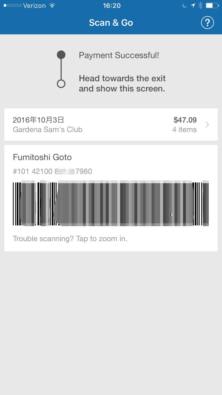 ⇒こんにちは!アメリカン流通コンサルタントの後藤文俊です。10月初め、サムズクラブでスキャン&ゴーで買い物をしてきました。後藤は3年前もウォルマート・スーパーセンター・サンノゼ店で旧型のスキャン&ゴーを試して買い物をしました。両方を試しているので上手く進化しているのがよくわかります。以前のものはウォルマート・アプリの機能の一部でした。ウォルマート店内でウォルマート・アプリを起動すると、スマートフォンのGPS機能から「インストア・モード(In-store Mode)」ボタンが現れ、インストア・モードに切り替えるとスキャン&ゴーのボタンが現れる仕組みでした。で、商品のバーコードをスキャンして買い物をします。最新バージョンのスキャン&ゴーはスキャン&ゴーのアプリがあるのでそれをダウンロードするのですね。つまりサムズクラブのアプリの一機能ではないのですね。最新のスキャン&ゴー・アプリは事前にクレジットカード(もしくはデビットカード)を登録しておくのです。