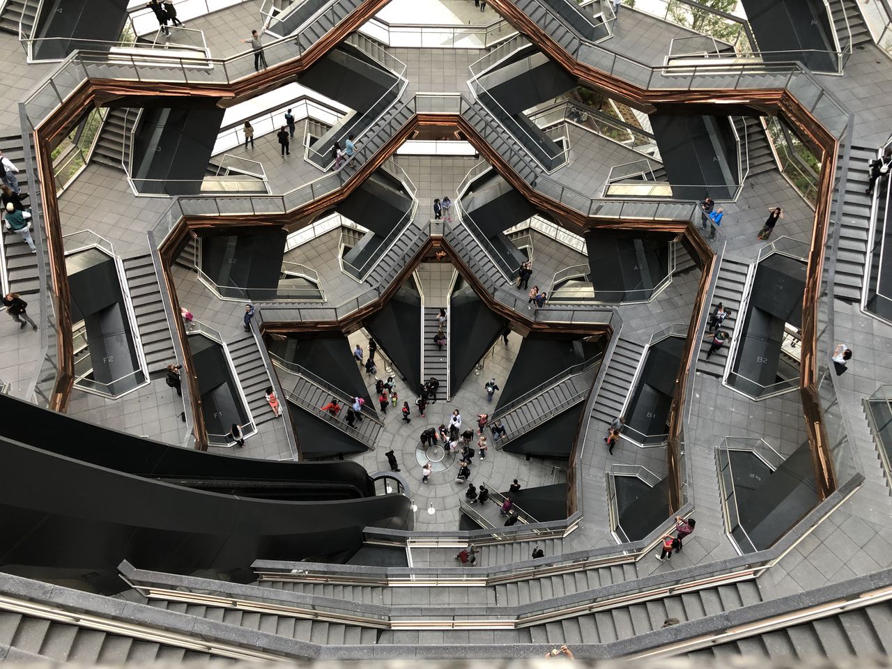 トップ画像:ニーマンマーカスのあるショッピングセンター内からみたベッセル。ベッセルは合計で2,500段近くとなるステップに80ヶ所の踊り場があり、高さは150フィート(約45メートル)となる展望台だ。