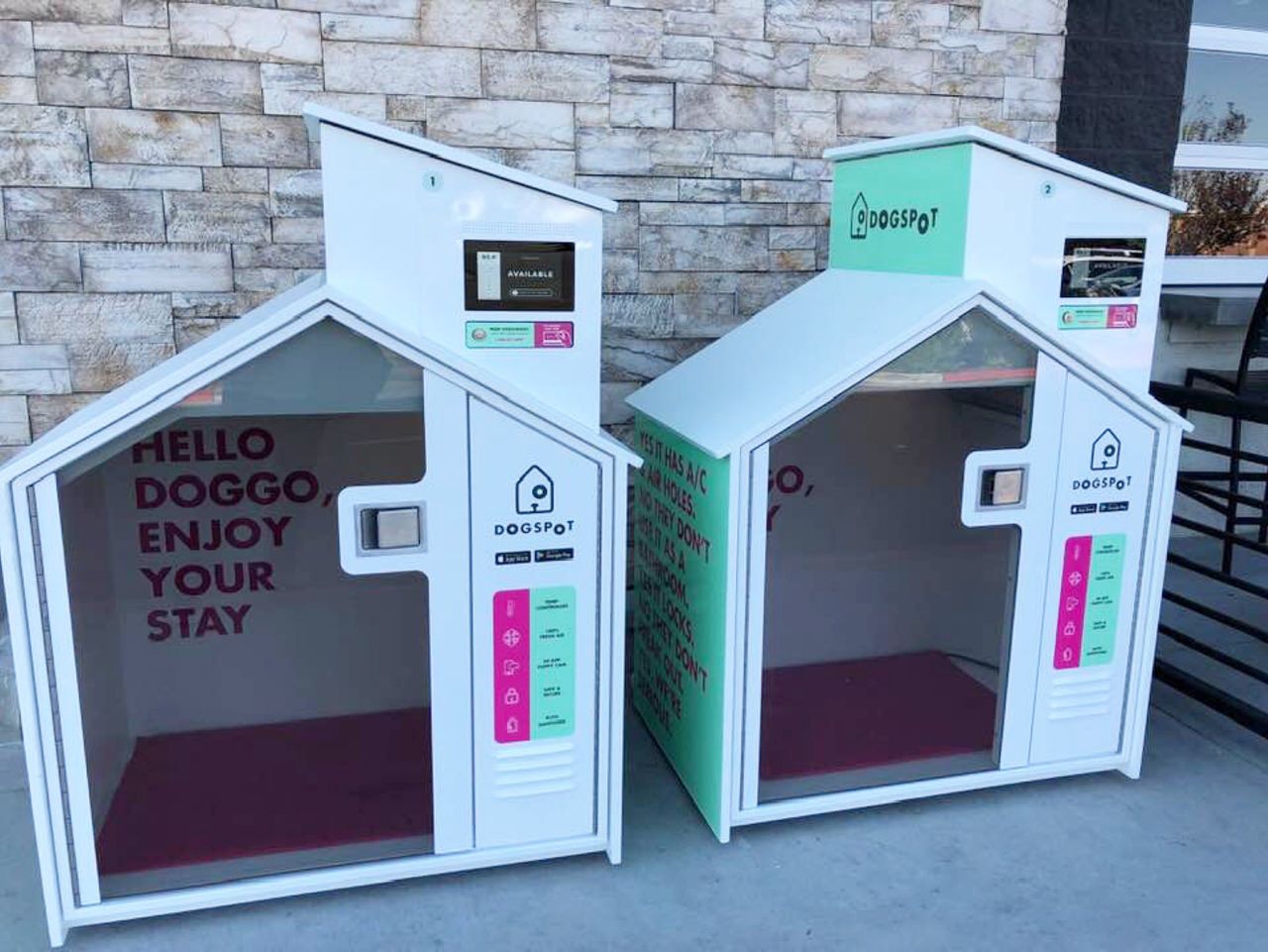 犬小屋の素材も数十人の獣医からのアドバイスで作られており、入り口のドアは飛散防止で透明の強化プラスチックを使用している。非利用時にはUV殺菌灯で室内の衛生管理も自動で行うという。