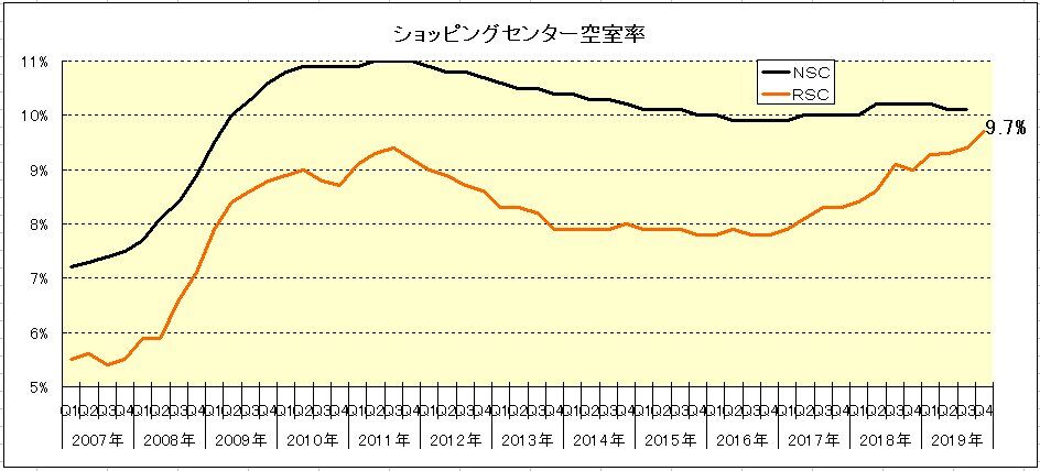 9.7%となるモール空室率は前年同期の9.1%から0.6ポイントも上昇したことになる。