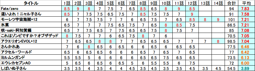 アニメ:12年4〜6月 評価Part.2