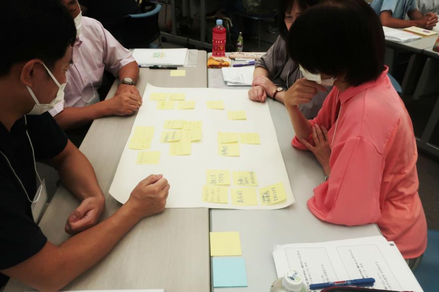 小グループに分かれ、支援者として「この人なら(話ができる・頼れる/話ができない・頼れない)」と思われる要素を書き出し、対話をしていきます。「この人なら」と思われる姿勢やまなざしとは何かを一緒に考えていきます。