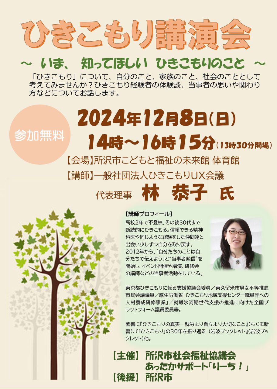 イベント告知:12/8 ひきこもり講演会(所沢市社会福祉協議会主催)