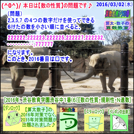(数の性質・N進数)『渋谷教育学園渋谷中2016年』[算数合格]【算太・数子】※───────────────────────────────※