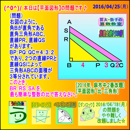 (平面図形)『麻布中2016年』その2[算数合格]【算太・数子】※───────────────────────────────※