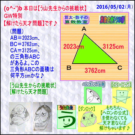 [う山先生の挑戦状]の【解けたら天才】の問題を考えて、