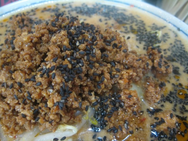 でもこの担々麺は個人的には850円出しても悔いなしのボリューム、味でやんす。濃厚なゴマの風味豊かでクリーミーなスープはほどよい酸味と辛味(といっても全然辛くないっすよ)が相まってごはんにかけて食べたくなるうまさ(^^)挽き肉、もやし、キャベツなどの具材も多くて食べごたえ十分!