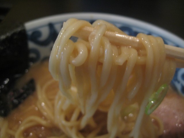 具材はネギ、メンマ、チャーシュー、海苔。スープはまず節系の風味が強く入ってきます。で、そのあとにトロっと粘度高めで甘みのある豚骨スープの味がやってきます。濃厚でもマイルドさも備わっていてしつこくない味でした(^^)うまし☆