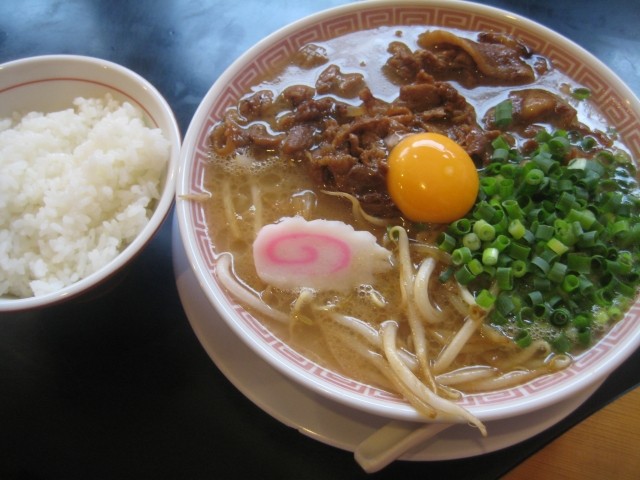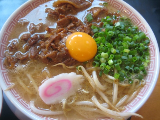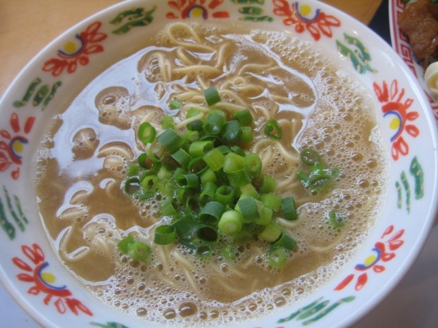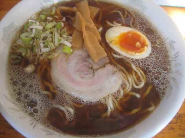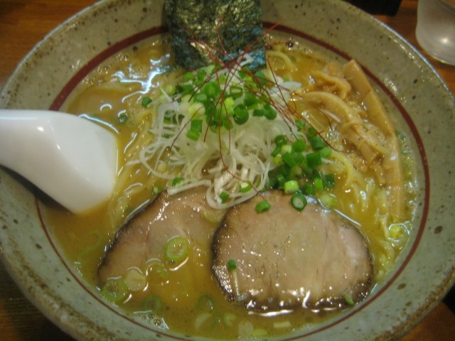 実はこれ、普通のラーメンじゃなくて多分○○ラーメンってのだと思われ。というのも、一緒に行った三石氏が食べたのが水菜が入ってるノーマルのラーメンで俺のはネギ入ってるから違うラーメンなんす。しかしメニューや金額や味のメモしてたケータイを水没により失ってしまったため全然わからんのです(TOT)