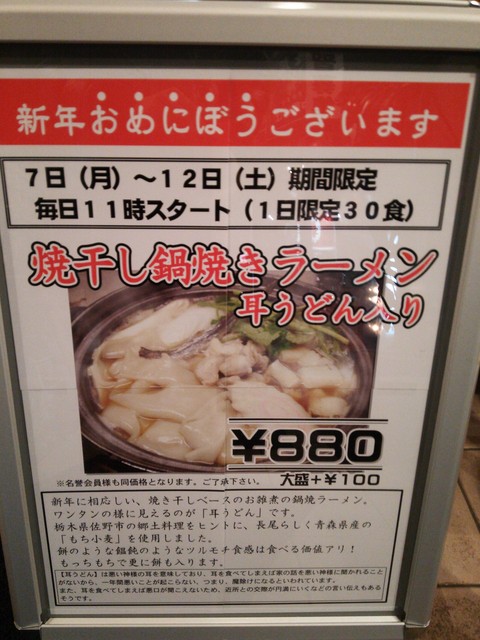『長尾中華そば 西バイパス店』で1月7日から1月12日までの限定メニューを今さら書きます(笑)