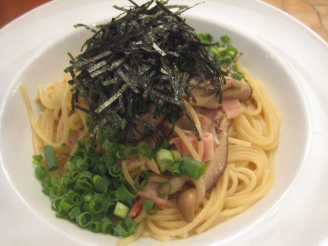 もう1皿はこれ。昆布だしのパスタってなかなか聞かないから食べてみました(^^)ネギだけでなく刻み海苔もキノコもたっぷりでうまし!昆布だしと、白だし醤油の和ハーモニー。実はキノコもしっかり入ってます。