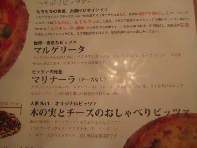 ピザも注文してたんですが写真うまく撮れてなかったんで不採用〜。クリスピータイプなら何枚でも食べれそうですが、ピソリーノはナポリにこだわる!ということでナポリ風ってことは生地の厚いタイプのピザなのでござる。分けて食べても1枚ではらたいらさんに3000点・・・じゃなくて腹キツい!