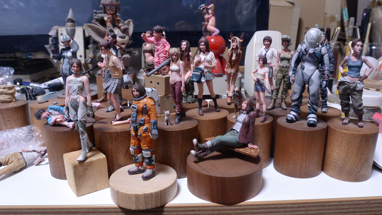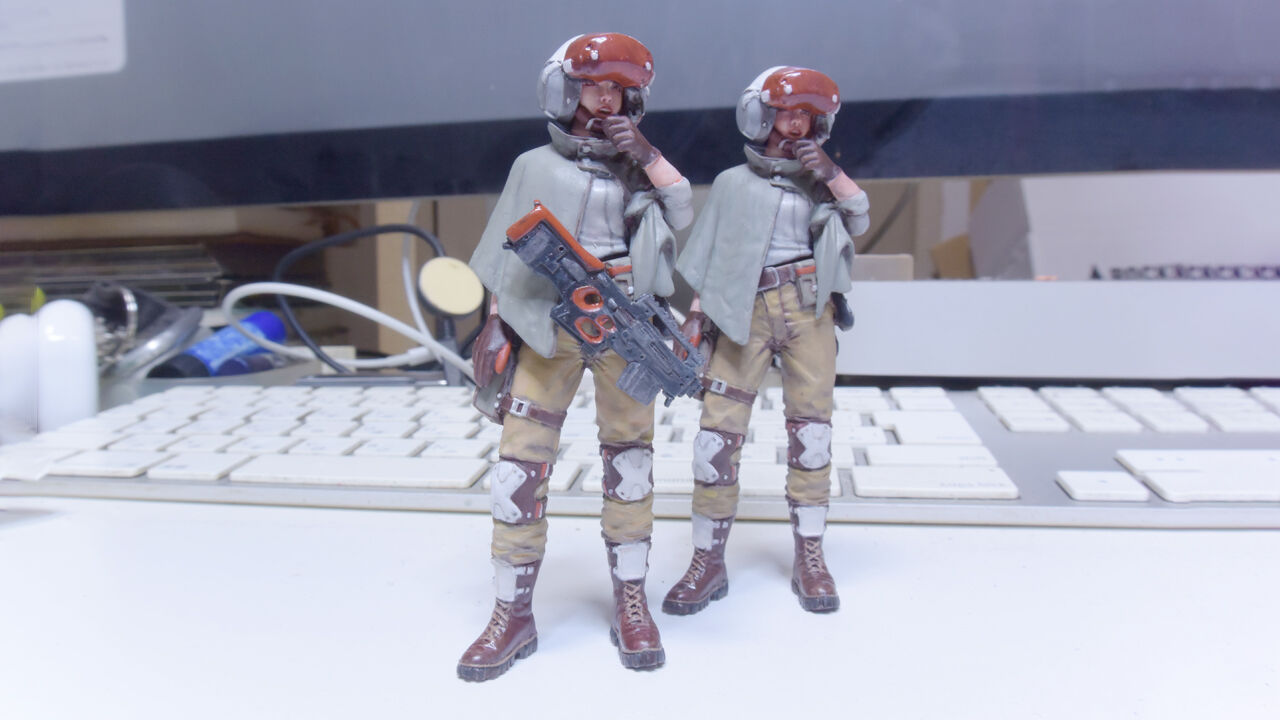 マシーネンモデラーにはお馴染みの2体同時塗りでございます。極貧モデラーの私には中々実践する機会がありませんでしたがやってみると面白いですね。以前、FBでボクが過去に塗ったフィギュアのリペイントの画像を投稿した際に横山先生にお褒めいただいたのですが、「過去の自分より上手く塗れました」とコメ返したところ、横山先生曰く「同時塗りしたら直前の自分より上手く塗れるから自己記録を更新し続けてめっちゃ上手く塗れちゃうよ」(文言不正確)と教えていただきました。