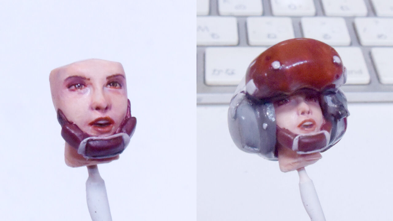 そんな美人のお顔を隠してしまうメットを塗り始めました。これもホネミッツフィギュアの昔からの特徴でもあるんですがコスチューム・メットのデザインが複雑なのにゴチャゴチャしていないカッコいいメットです。でもお顔は隠してしまうという贅沢仕様。