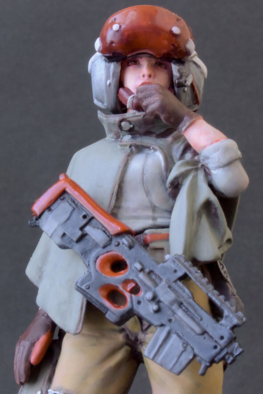 めっちゃ美人です。ちょっと前に昔のホネミッツフィギュアを塗りましたが、とまそんさんの作る女性は昔からどこか西洋美人の雰囲気が漂っているのですが、割と近作である女性コマンダーを塗ってみると、とまそん先生がめっちゃ腕を上げているのがわかります。