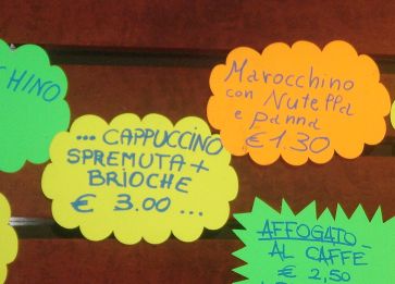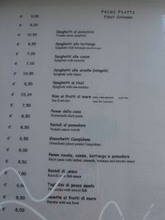 通りすがりのトラットリアのメニュー。