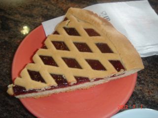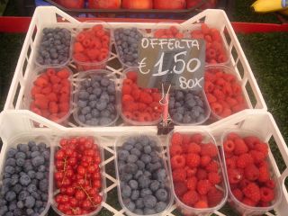 さっき買った木苺に、ジェラート屋さんで、ジェラート乗せてもらって食べる。