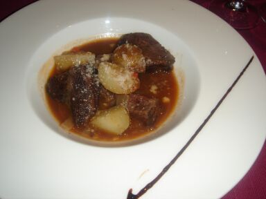 山のような牛肉のバローロ煮込みのデモンストレーションでは、