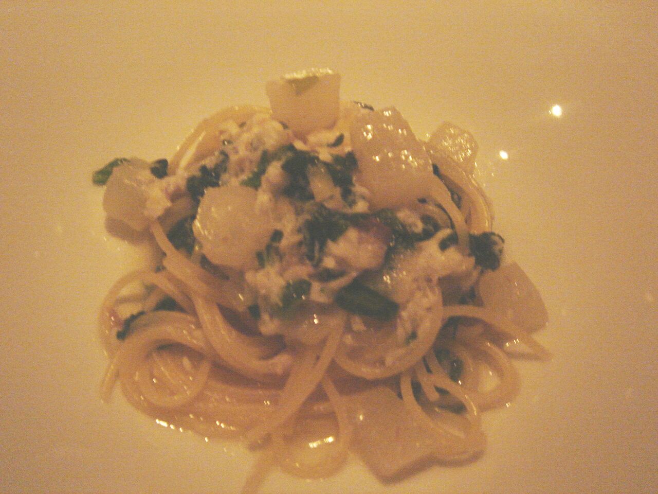 『パスタは2種類のあと、魚、肉があるから食べ過ぎちゃダメ〜