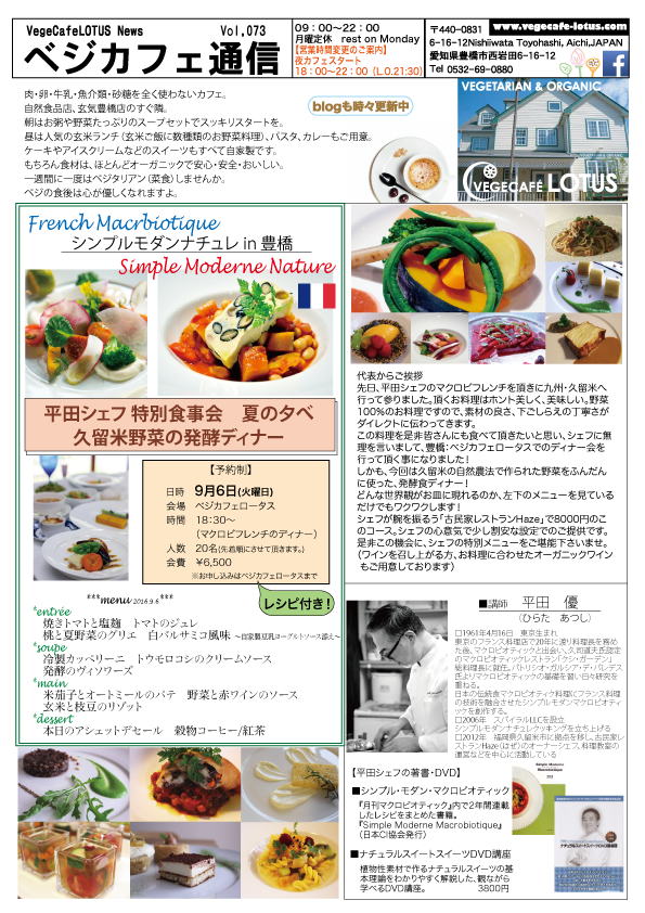 となりました。もちろんマクロビオティックをベースに、体の調整をして頂ける「食」です。