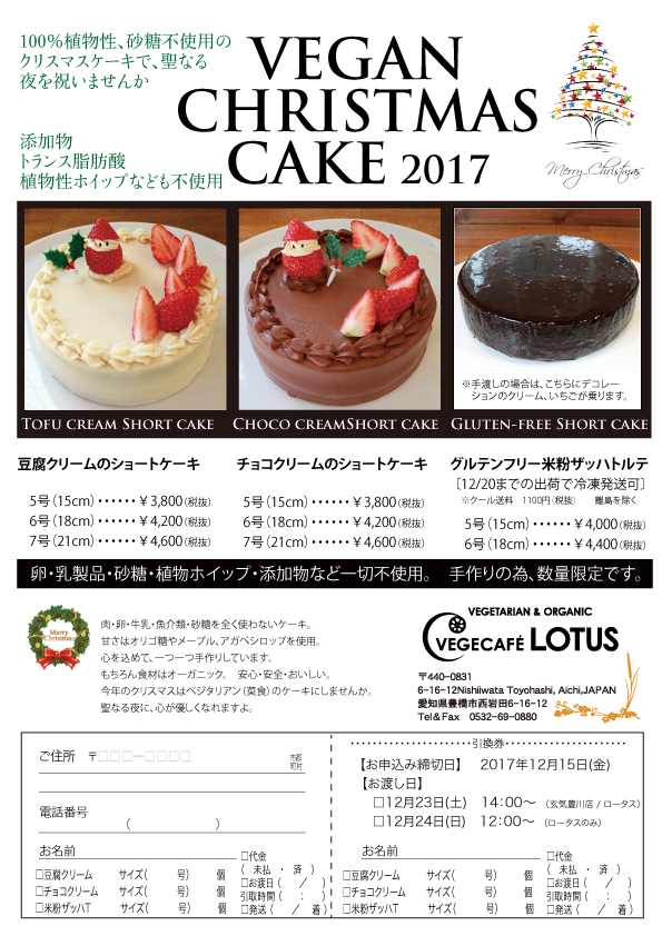 聖なる夜に、動物性も全く入らないピュアなケーキでお祝いというのも良いですよね。