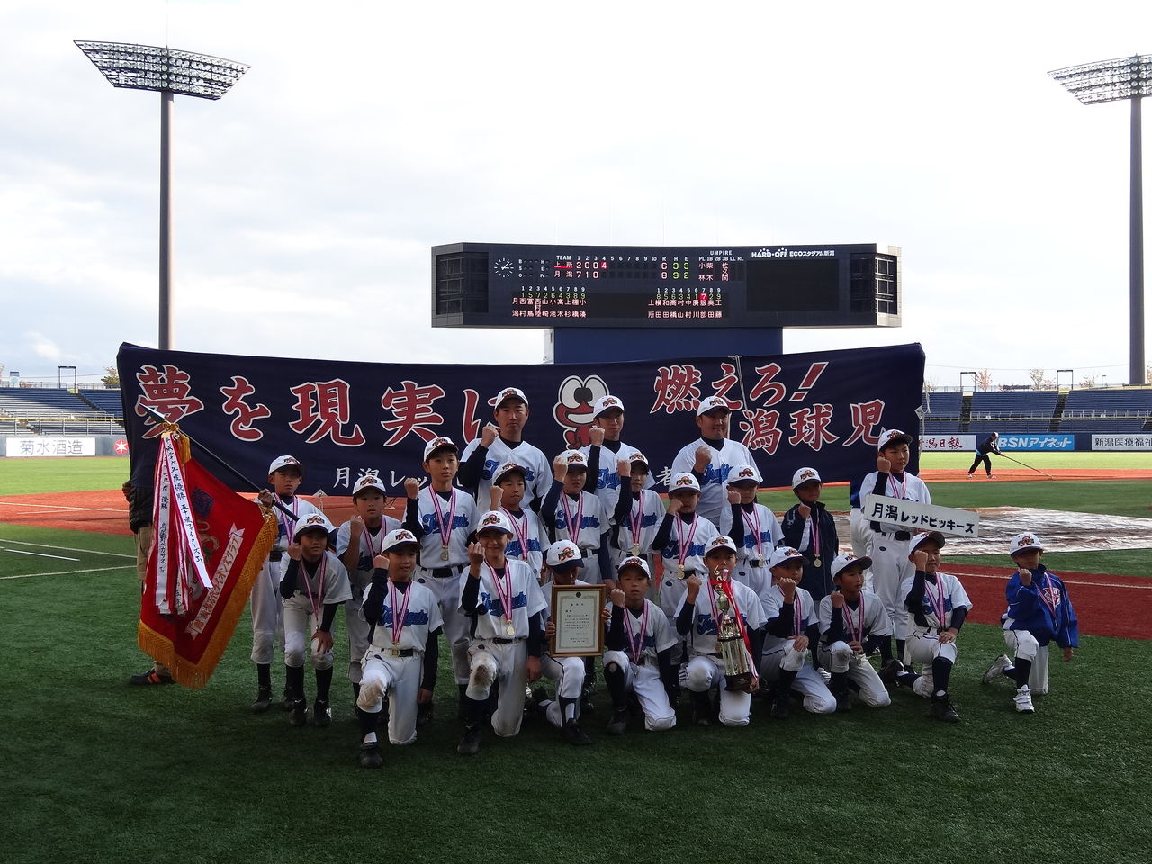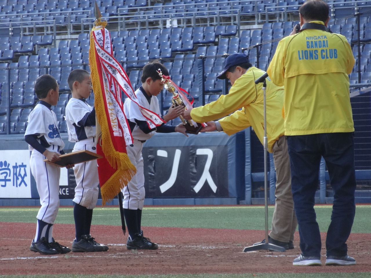 3日は中之口カップと新潟市選抜5年生野球大会の予定でしたが、雨で中之口カップは順延となり、エコスタでの第30回新潟万代ライオンズクラブ主催 新潟市選抜5年生野球大会のみ行われました。