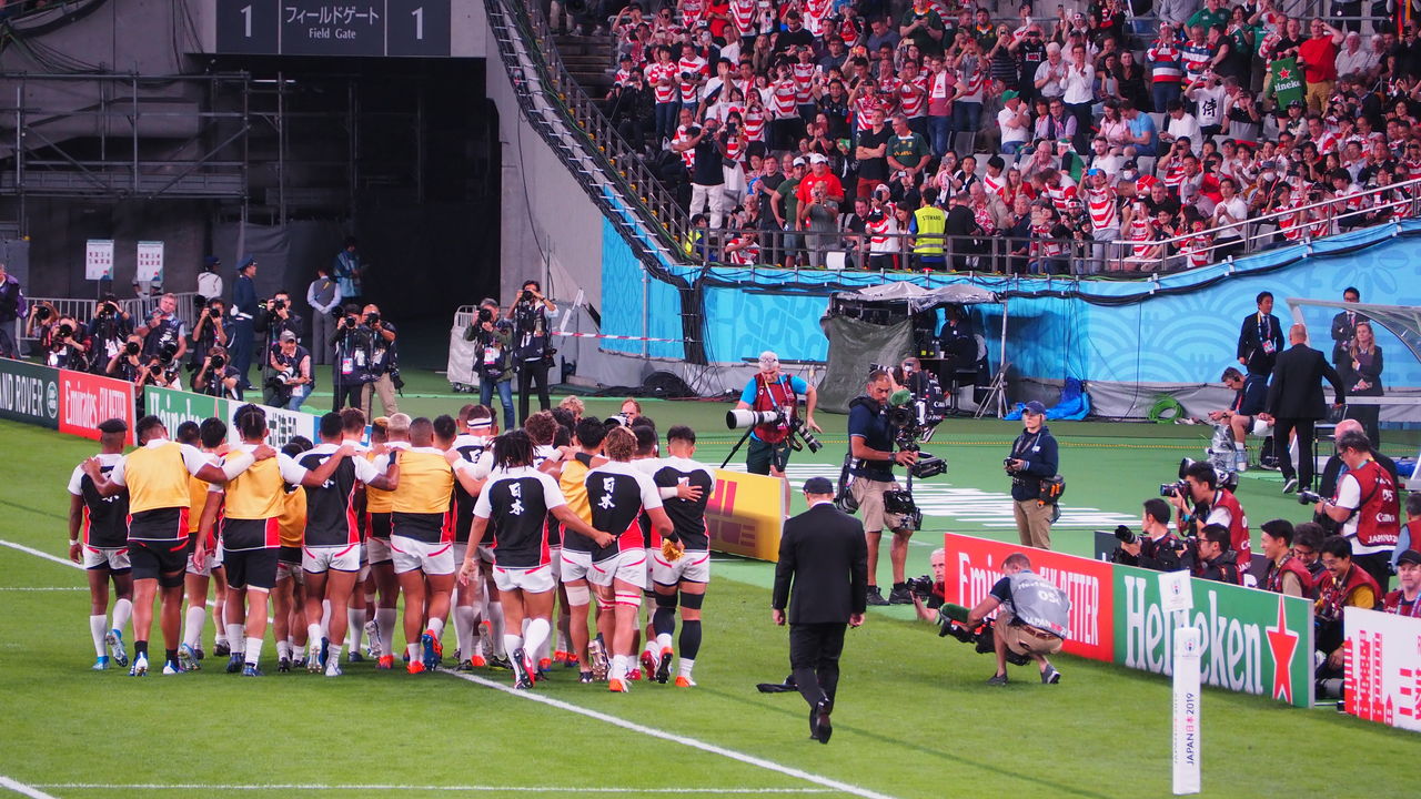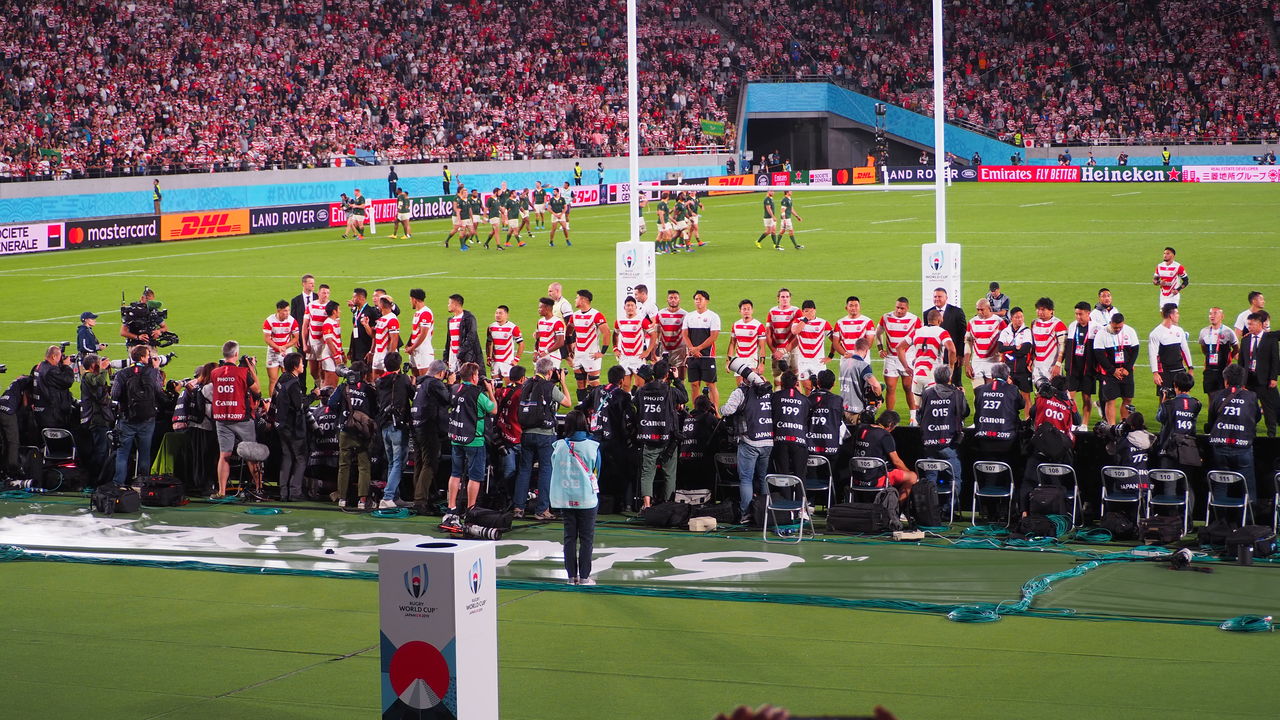 南アフリカ戦、赤と白に染まったスタンド。選手たちがロッカールームに戻る際に肩を組むと、それだけで大きな歓声が上がりました。入場してくるときひとりひとりへの声が上がりました。君が代を歌うとき、流大が泣いていました。僕も泣いていました。姫野和樹も稲垣啓太も田村優も汗と言い張るには無理がある滴でした。見ろよみんな、この光景をと思いました。見ているか五郎丸、この光景をと思いました。見てますか小野澤さん、大西さん、大畑さん、平尾さん、松尾さん…記憶に残る選手たちの顔を思い浮かべては「にわかファン」なりの涙を流すのです。日本は作ったぞと。日本代表は牽引したぞと。世界に誇れる舞台をここに生み出したぞと。