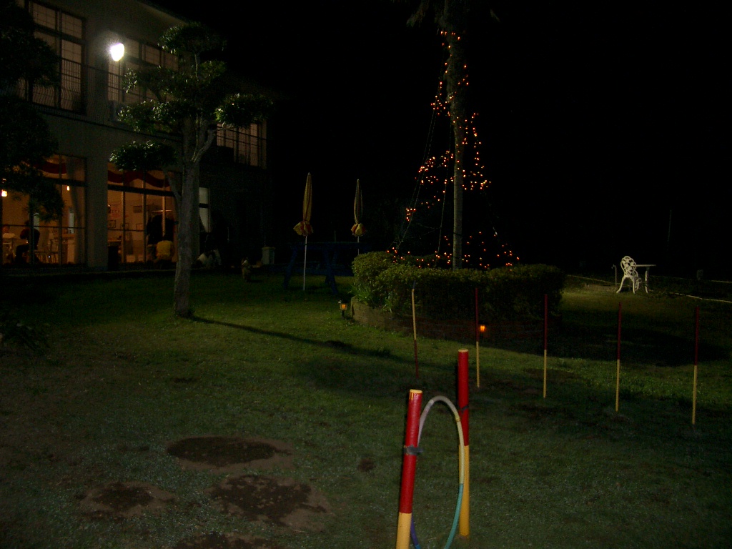 お食事後はもう暗くなったお庭(ドッグラン)でひとっ走り。