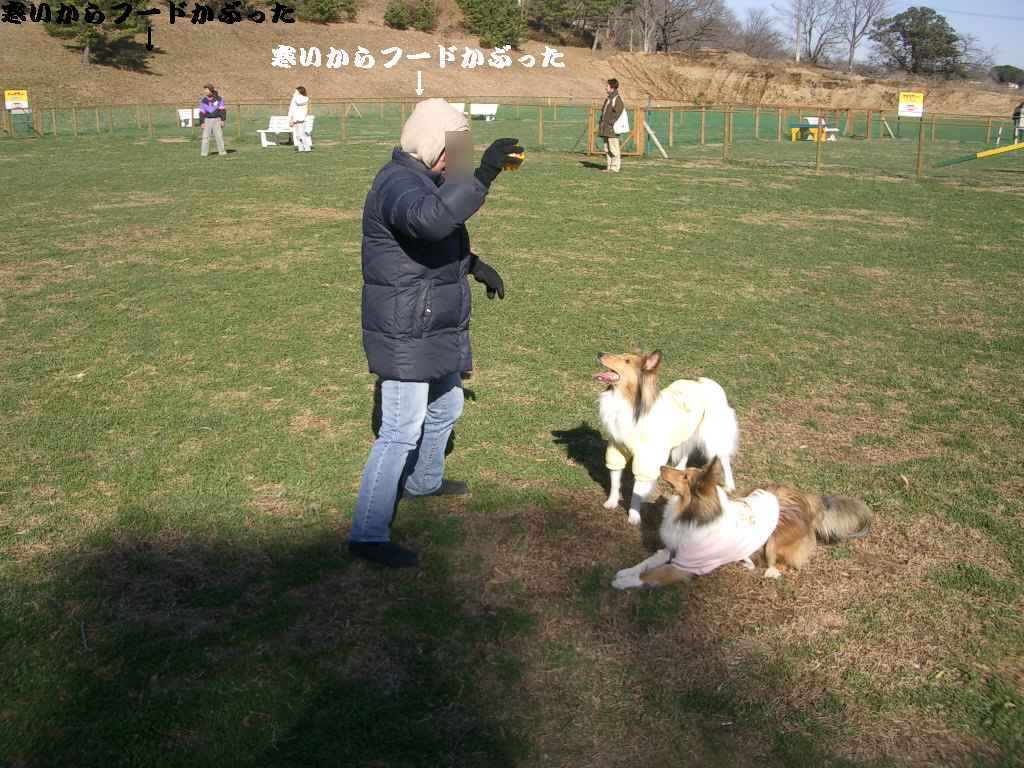 マザー牧場のドッグランは広くてワンたちは楽しそうですが何せ風が冷たくてさむーーーーーーい!!!
