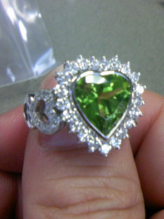 ぺリドットのハートシェイプにダイアモンドを取り巻き、