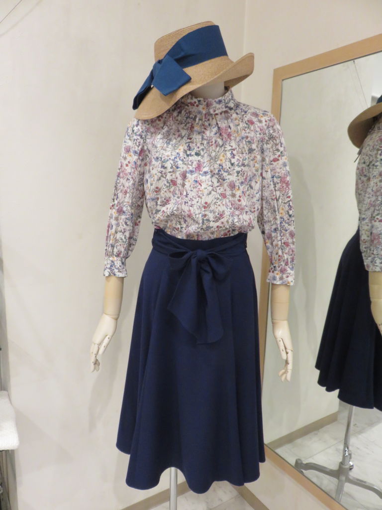 ウエストリボンのフレアスカートと。