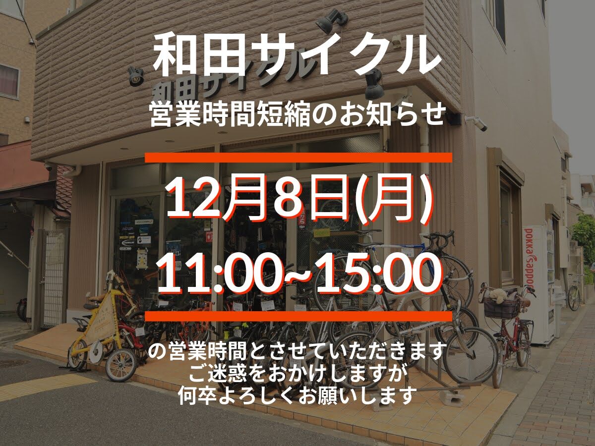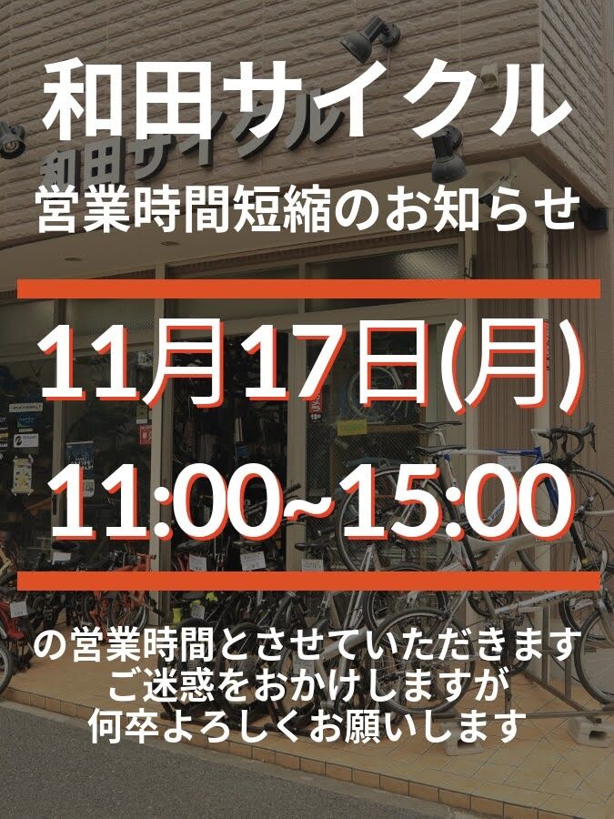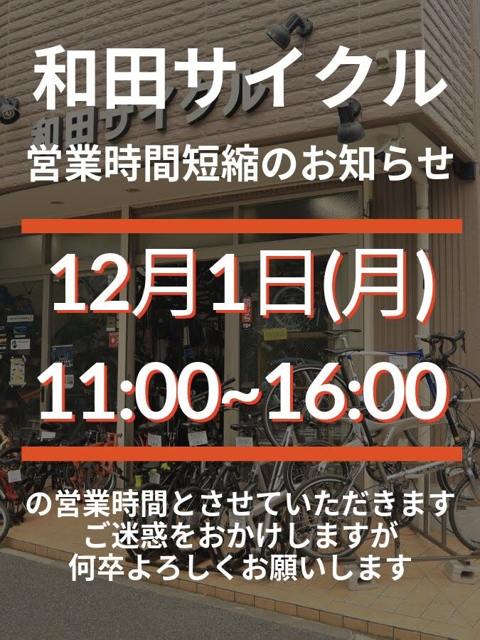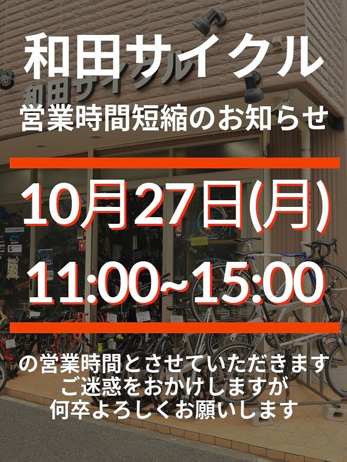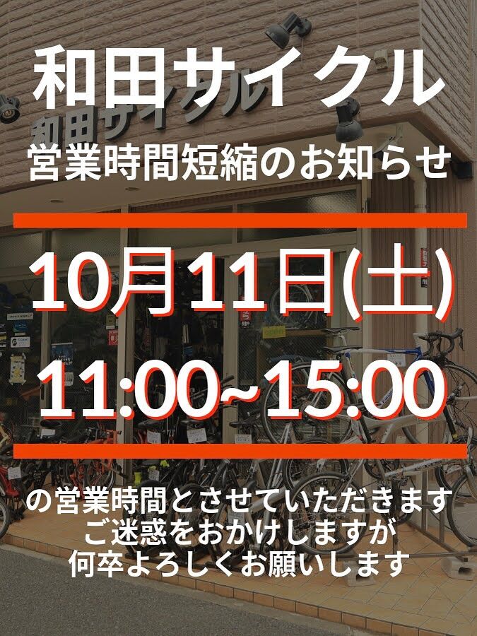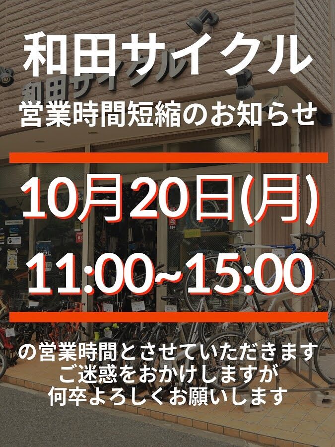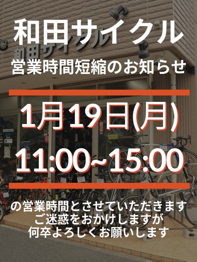 【営業時間短縮のお知らせ】いつも和田サイクルをご利用いただきありがとうございます