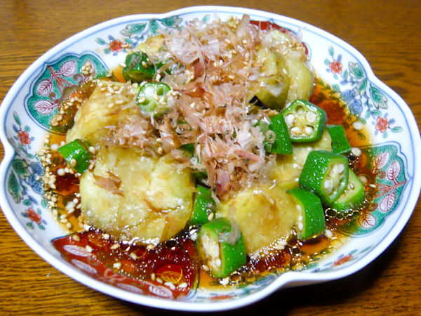 オクラを甘辛い味付けのだし汁で煮てあるので、やわらかくなって、たくさん