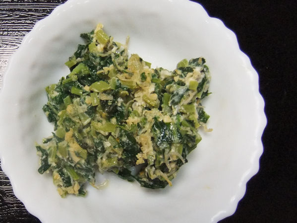 茹でた、おねば(大根の間引き菜)を一度に沢山食べられる。