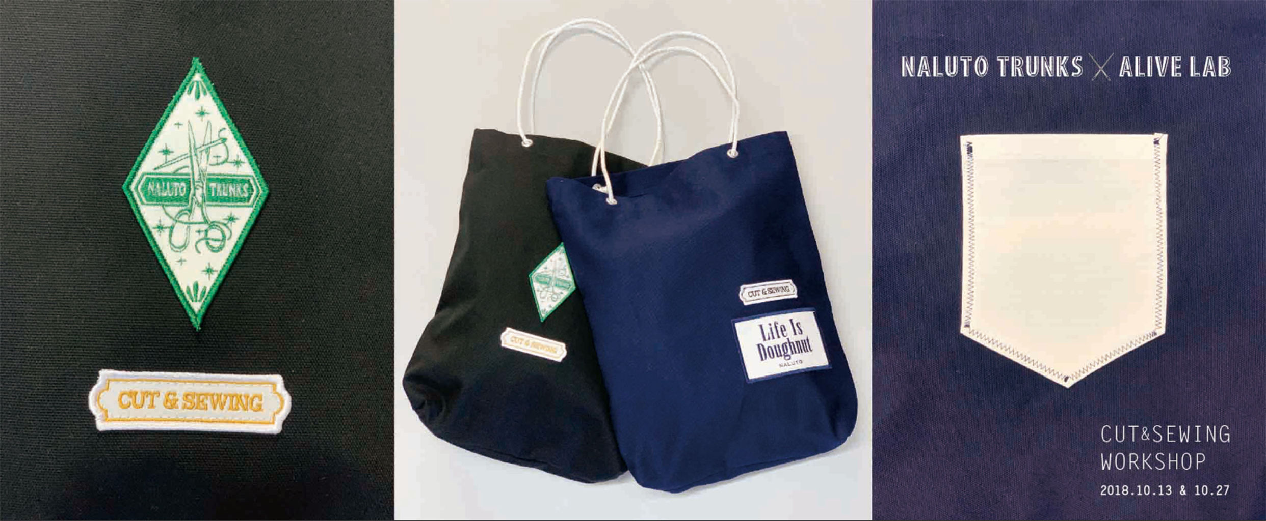 Tシャツ、トートバッグにお好みの「NALUTOオリジナルのワッペン」を選び、ミシンで”縫う”ワークショップを開催。