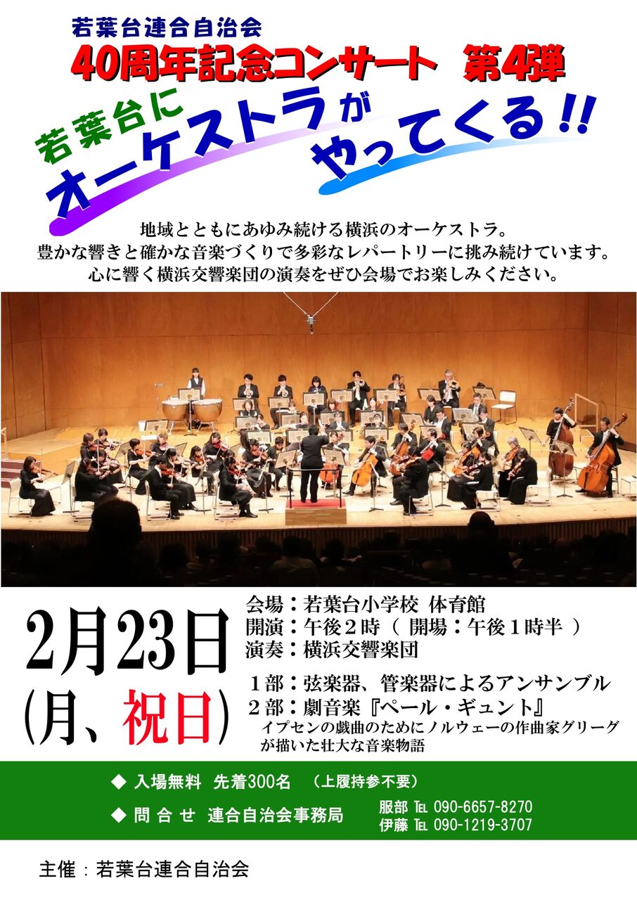 若葉台連合自治会創立40周年記念コンサート第3弾のお知らせ