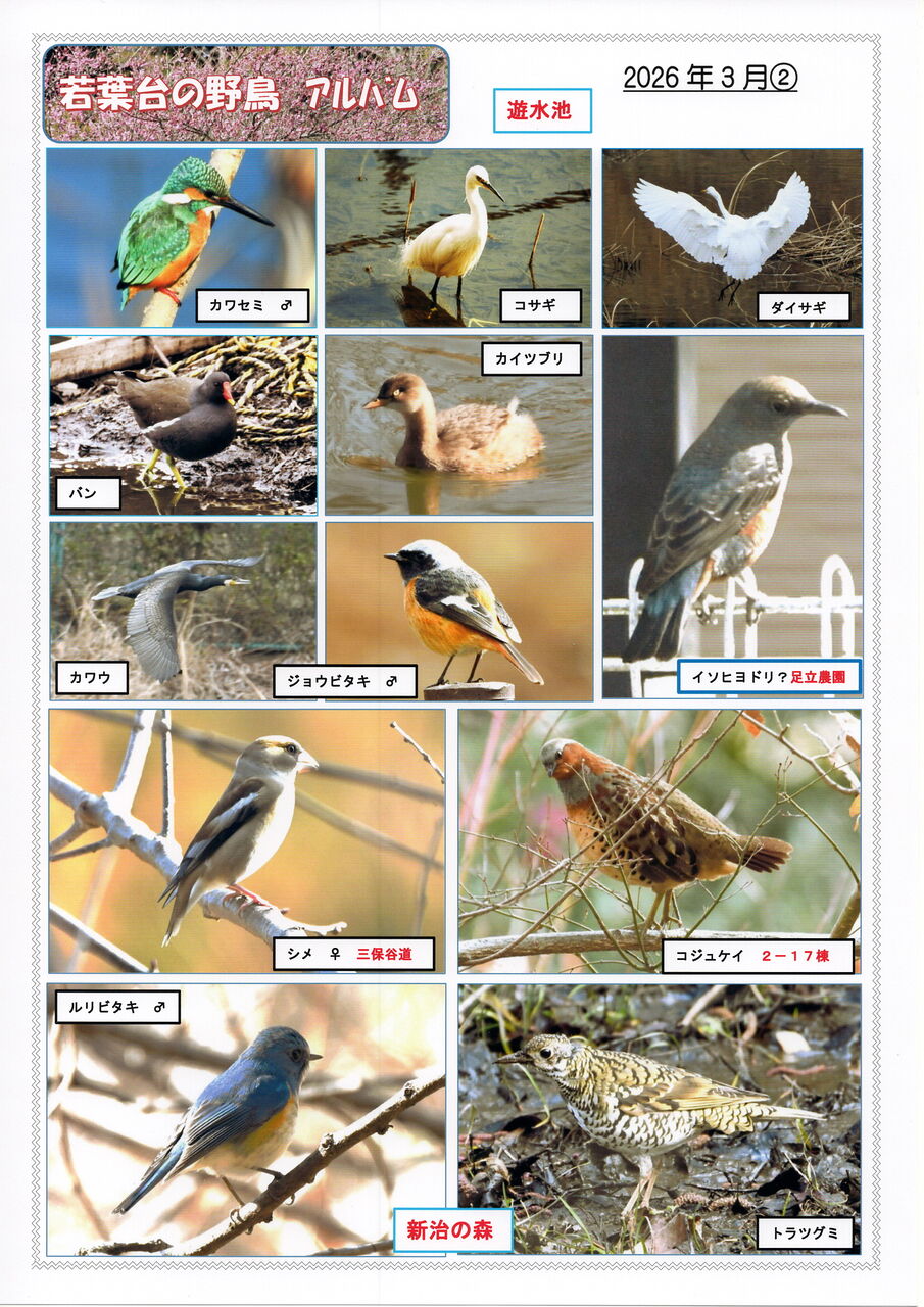 若葉台遊水池水辺愛護会 野鳥アルバムをお届けします